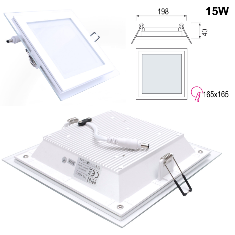 LeuchteSMD LED Einbaustrahler mit Glasrahmen, slim rund dünnLichtfarbe:3000K / warmweissMontageart:DeckeneinbauEnergieeffizienz:A+ (A++ sehr effizient - E weniger effizient)Leistung:15WLichtstrom:1200lmErsatz für Halogenstrahler:60WFarbe:weiss, GlasrahmenMaterial:Aluminium Druckguss / Glasdimmbar:neinAnschlußspannung Einbaustrahler:12V (Niedervolt) / Transformator beiliegendBetriebsspannung Transformator:220-240V~ / 50-60HzEnergieverbrauch:15kWh/1000hAbstrahlwinkel120°Lebensdauer:30.000hLED Leuchtmittel:fest eingebaute LEDSchaltzyklen:95.000Farbwiedergabeindex:70LED Typ:SMD LEDSchutzklasse:IISchutzart:IP20Lochmaß / Bohrmaß:165x165 [mm]Einbautiefe:70mmForm:SMD LED Einbaustrahler mit Glasrahmen extra dünn ultraslim