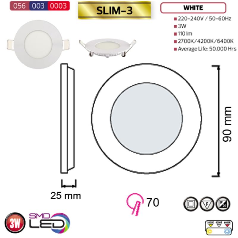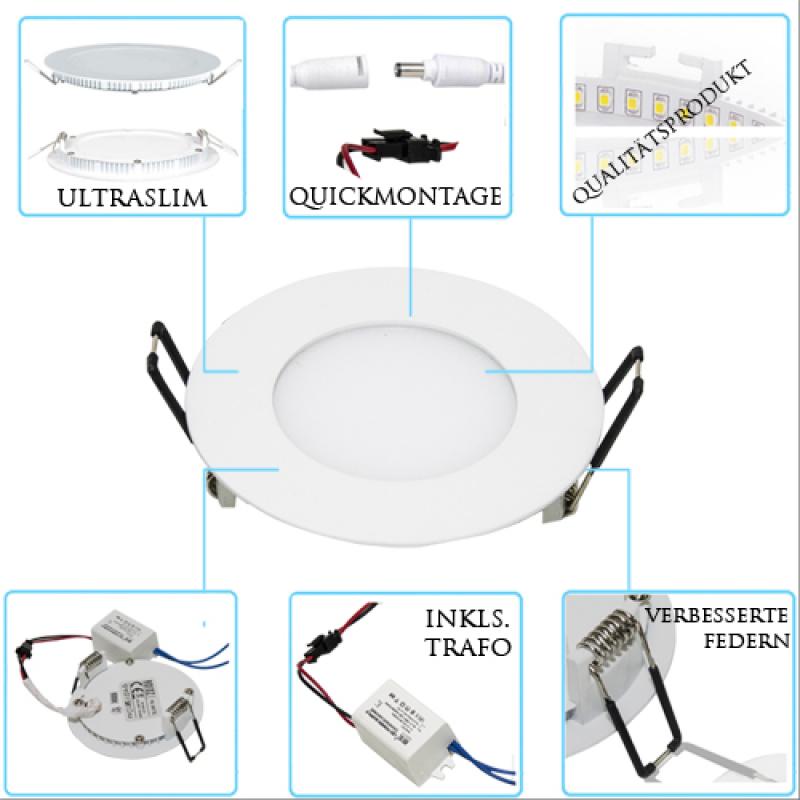 LED Panel Ultraslim weiss rund 3W 2700K warmweiss